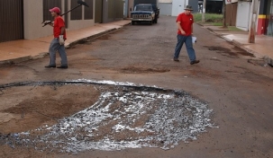 O que é isso? Um disco-voador pousou no meio da rua Clementino Farago, no jardim Três Marias? Parece, não parece? Seja o que for, a equipe da Codusa esteve por lá e tapou o buracão.
