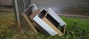 "Na av. Goioerê, entre as ruas São José e Interventor Manoel Ribas, restos de móveis foram "esquecidos" no canteiro central".