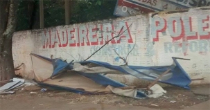 "Rua Panambi, esquina com av. Goioerê. A calçada já estava ocupada por restos de materiais de construção e agora rececebu algo que parece um toldo detonado. Lamentável isso".
