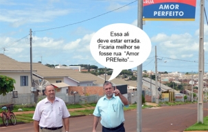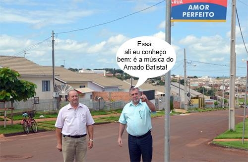 O clic vem de Ubiratã, onde o prefeito Baco Duarte e o vice-prefeito Sebastião Beraldo foram conferir as novas placas com nomes de ruas do conjunto João Paulo II e do Residencial Parque das Flores. Neste último todas as vias têm nomes de flores. Se bem que "Amor perfeito" é mais conhecida com música do Amado Batista. E música triste, diga-se de passagem: "No hospital, na sala de cirurgia..."
