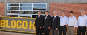 A inauguração do bloco H da UTFPR, nesta sexta-feira, foi simbólica. A "caravana do PPS", no entanto, fez questão de fazer a foto no local - Rubens Bueno, Edson Battilani, Sidnei Jardim e Douglas Fabrício.