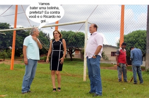 O clic é do jardim Silvana, onde a prefeita Regina Dubay foi conferir a quantas andam as melhorias no campo de futebol. O investimento é de R$ 41 mil. O secretário Ricardo Echelmeier (Esportes) e o diretor geral da Fecam, Itamar Tagliari, acompanaram a visita. Nos próximos dias começam as melhorias no campo do jardim Cidade Nova.