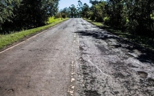 "Rodovia que liga Campina da Lagoa a Altamira do Paraná. São 30 km que se fazia em 20 minutos. Agora o tempo gasto é de 45 minutos. Azar de quem passar mal". (Foto enviada por internauta)