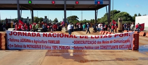 Trabalhadores ligados ao MST ocuparam nesta quarta-feira a praça de pedágio da BR-369, entre Campo Mourão e Mamborê.