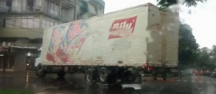 "A foto foi feita na sexta-feira, às 16h, quando caminhão passa pela av. Goioerê e vira para entrar na rua Araruna, no centro de Campo Mourão".