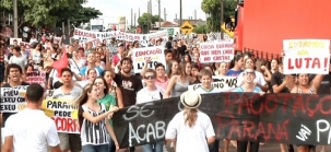 Professores e servidores da educação protestam contra um pacote de medidas do governo do Estado.