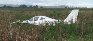 Susto segunda-feira em Goioerê. Um avião monomotor fez um pouso forçado numa plantação de milho, a cerca de um quilômetro do entreposto da Coamo. Isso pouco depois da decolagem. Duas pessoas estavam na aeronava e uma delas teve ferimentos leves. O avião teve poucos estragos. Grande mesmo, só o susto. Ufa!...