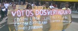 A passeata também inclui cartazes com críticas aos vereadores que não assinaram a moção de repúdio a Beto Richa.
