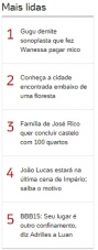 Nada disso. O assunto mais clicado durante o dia foi sobre uma falha no programa do Gugu (Record). Também estavam entre as cinco mais lidas o castelo incabado deixado pelo cantor José Rico, a novela das 9 e o Big Brother.