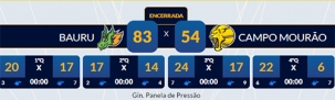 A partir do terceiro quarto, no entanto, Bauru sobrou, a ponto de fazer 22 a 6 no último período, abrindo 29 pontos de vantagem.