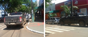 “E o pedrestre, cadeirante passa onde? A camionete parou em cima da faixa de pedestres, bloqueando a rampa paara deirantes. Foi neste sábado, por volta das 11h, na av. Capitáo Índio Bandeira esquina com Santa Catarina”.