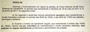 Até dia 15 de junho o fórum eleitoral atenderá de segunda a sexta das 9h às 12h e aos sábados das 9h às 17h só para casos eleitorais.