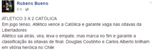 Bueno destacou a vitória do time dele, o Atlético/PR, na Libertadores.