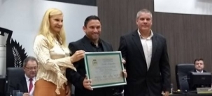 O técnico do Campo Mourão Basquete, Emerson de Souza, recebeu nesta terça-feira o título de Mérito Desportivo. A entrega, durante sessão solene da Câmara, foi feita pela autora do projeto, a vereadora Nelita Piacentini, e pelo secretário de Esportes, Marcelo Lima.