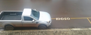 Na av. Irmãos Pereira, centro de Campo Mourão, camionete "invade" a área destinada a vagas preferenciais.