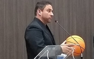 Émerson de Souza, técnico do Campo Mourão Basquete, ao falar sobre o projeto da modalidade que existe na cidade; ao receber o título de Mérito Desportivo, em sessão da Câmra, nesta terça-feira.