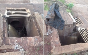Na rua Pavão, esquina com av. John Kennedy (Lar Paraná), a tampa do bueiro quebrou. Como o poder público costuma demorar para agir, alguém já tomou providências e "sinalizou" o perigo.