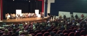 O ministro Ricardo Barros (Saúde) tinha compromisso em Maringá e fez um discurso rápido, neste sábado, no Teatro Municipal.