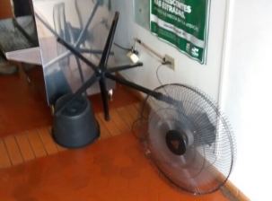 Precisa secar o chão e não tem um pano adequado? Calma. Seus problemas acabaram. Acaba de ser lançado o "Deiteichan Ventileitor Tabajara". Trata-se de um moderno sistema, que usa alta tecnologia para deitar o ventilador, deixando-o rente ao chão.