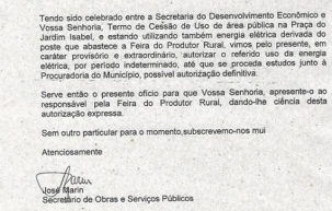 Agora apareceram documentos mostrando que a barraca tinha autorização, inclusive para usar a energia elétrica da praça.