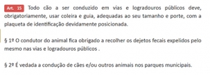 Em tempo: o Artigo 16 da lei 1.410 prevê multa de R$ 10 para cada “dejeto” não recolhido. Uma emenda à proposta em tramitação na Câmara prevê aumento nesse valor, que pode chegar a R$ 100.
