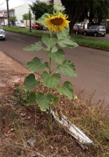 Até a natureza tem vergonha do que acontece em nossos canteiros e calçadas. Olhe abaixo desse pé de girassol: lâmpadas quebradas e jogadas na calçada. O clic é da av. Jorge Walter, esquina com Roberto Brzezinski. Cláudio