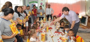 Na semana de Páscoa se tornou comum ver prefeito virando coelhinho por aí. Uma dessas transformações ocorreu em Luiziana, onde o prefeito Mauro Slongo entregou caixas de bombons para as crianças de escolas e creches municipais. Teve chocolate também para professores e funcionários. Ao todo foram 1.720 caixas de bombons.