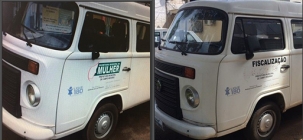 Kombi da prefeitura, que era da Secretaria da Mulher e atendia clubes de mães e Provopar, entre outras ações, agora está sendo usando para notificações da Secretaria de Fiscalização.