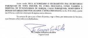 A autorização está em “Comunicado” assinado pelo vigário-geral, padre Gaspar Gonçalves da Silva.