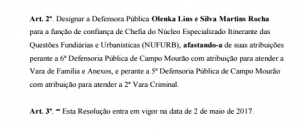 Durou apenas seis meses a passagem da defensora pública Olenka Lins e Silva Martins Rocha por Campo Mourão.