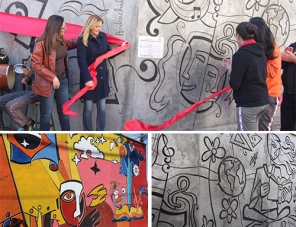 Foram inaugurados nesta quarta-feira os dois painéis feitos no muro do colégio Unidade Polo pelo artista plástico Marcos Andruchak. Um deles é em preto e branco e outro bem colorido. O artista é de Natal, reconhecido internacionalmente, e fez o trabalho de graça. A pintura ficou por conta de alunos e professores.