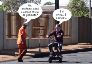O clique vem de Peabiru, onde o prefeito Claudinei Minchio encontrou um jeito diferente de conferir as obras de recape de ruas da cidade: de motoneta. Os trababalhos comearam pela região do Princesa Isabel e na região central, principalmente próximo à escola municipal Emílio de Menezes e na rua José Dias Aranha.