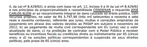 Pela sentença, ele terá de ressarcir o prejuízo de R$ 3,7 mil, mais correções, além de pagar multa de igual valor