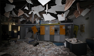 Olha só como ficou a agência do Banco do Brasil de Campina da Lagoa. Isso depois que uns “clientes” passaram por lá na madrugada desta quinta-feira. Ao invés de senhas e cartões, usaram bombas para retirar o dinheiro de caixas eletrônicos e do cofre central. Isso por volta das 4h da manhã. A Polícia Militar até chegou a tempo, mas foi recebida a bala e, em número inferior, precisou esperar a chega de reforços. Os ladrões estavam em cerca de 15, em vários carros e motos.