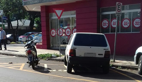 Nesta sexta-feira à tarde, na rua Sant Catarina, carro estaciona em vaga de motos.