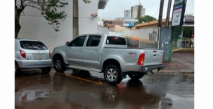“Na manhã desta segunda-feira, na rua Harrison José Borges, centrão de Campo Mourão, camioneta estaciona impedindo a entrada e saída do portão ao lado”.