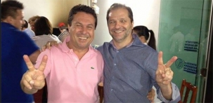 Osni Menezes e Márcio Nunes felizes da vida, juntos, durante a campanha de 2014, quando Nunes se elegeu deputado estadual e Osni era candidato a federal. Hoje não dá para convidar os dois para a mesma mesa. Osni deixou o PSC chamando Márcio de “traidor”. Márcio alega que sempre foi claro que o grupo teria candidato próprio.