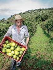 Duas fotos de produtores de frutas de Corumbataí do Sul estão expostas na ONU, em Nova York.