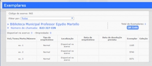 Já é possível fazer a consulta no acervo já catalogado no sistema. Dá pra saber, por exemplo, que a biblioteca tem três exemplares de “Cinquenta tons de cinza” e que nenhum está emprestado. Ou, se preferir algo mais clássico, tem disponível “Memórias Póstumas de Brás Cubas”, de Machado de Assis.