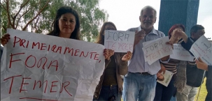 Membros do Conselho Municipal de Saúde prepararam cartazes pedindo “defesa do SUS” e “Fora Temer”.