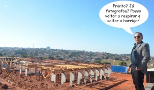 Olha o prefeito de Goioerê, Beto Costa, fazendo pose diante das obras da escola, entre a vila Guaíra e conjunto Águas Claras. Será uma escola de ensino fundamental, de período integral, com mais de 400 vagas. O estabelecimento terá 12 salas de aula, biblioteca, auditório, sala de informática e quadra de esportes, num investimentoo de R$ 3,3 milhões. Tudo liberado peo governo federal.
