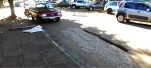 Morador coloca feijão para secar no meio da rua, no centro de Roncador. Segundo o blog SOS Roncador, eram cerca de 20 kg do grão, que ficaram ocupando lugar do estacionamento público na av. São Pedro.
