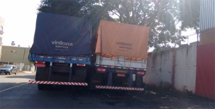 Caminhão para em fila dupla, na rua Pitanga, próximo ao estádio, para passar a carga de um para o outro. A foto é desta quinta-feira.