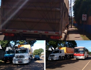 “O desrespeito à sinalização na rua Peabiru continua (foto do alto). E na rua Pitanga, caminhões seguem parando em fila dupla para fazer transbordo, o que obriga o trânsito a usar a contramão. Absurdo e ninguém faz nada”.