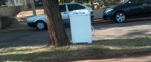 Pelo menos a máquina de lavar roupas foi deixada no canteiro central da av. Comendador Norberto Mardondes, esquina com a rua Roberto Brzezinski. Foto: Gervásio Honorato