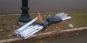 Tem lâmpadas fluorescentes velhas e não sabe o que fazer com elas? Põe no canteiro central! É isso que muita gente tem feito em Campo Mourão. A av. Manoel Mendes de Camargo, entre as ruas São Josafat e Devete de Paula Xavier é um bom (ou seria mau?) exemplo.