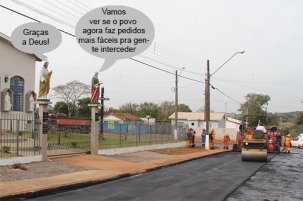 O clic é da rua São Luiz, no jardim Tropical, onde seguiram nesta segunda-feira as obras de recape asfáltico na asa leste. Os trabalhos passaram em frente à paróquia Nossa Senhora de Fátima. Antes, já tinham passado pela av. Pedro Viriato de Souza Filho e ruas Sanhaço, Galo-da-Serra e Ponta Grossa. Agora seguem pela av. Jacutinga, até o conjunto Avelino Piacentini.