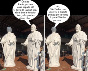 Olha aí mais cliques das imagens de São Pedro e São Paulo que serão colocadas em frente à Catedral São José. As fotos foram feitas em Marechal Cândido Rondon, onde elas foram confeccionadas, mas as duas estátuas já estão desde quarta-feira em Campo Mourão.