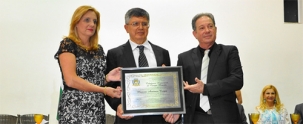 O médico Marcos Antonio Corpa recebeu nesta quinta-feira o título de Cidadão Honorário de Campo Mourão. A sessão solene aconteceu no Celebra. A entrega da homenagem foi feita pelo autor da proposta, o presidente Eraldo Teodoro, e pela prefeita Regina Dubay.