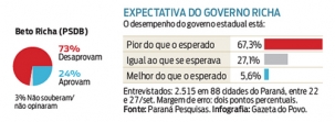 Já no Estado inteiro, a pesquisa divulgada nesta sexta-feira pela Gazeta do Povo mostra reprovação de Richa em 73%.